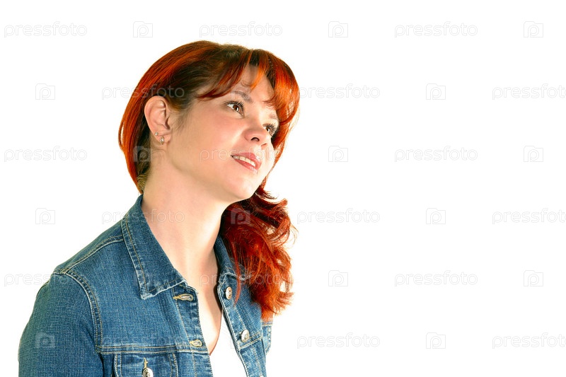 Портрет рыжей девушки на белом фоне