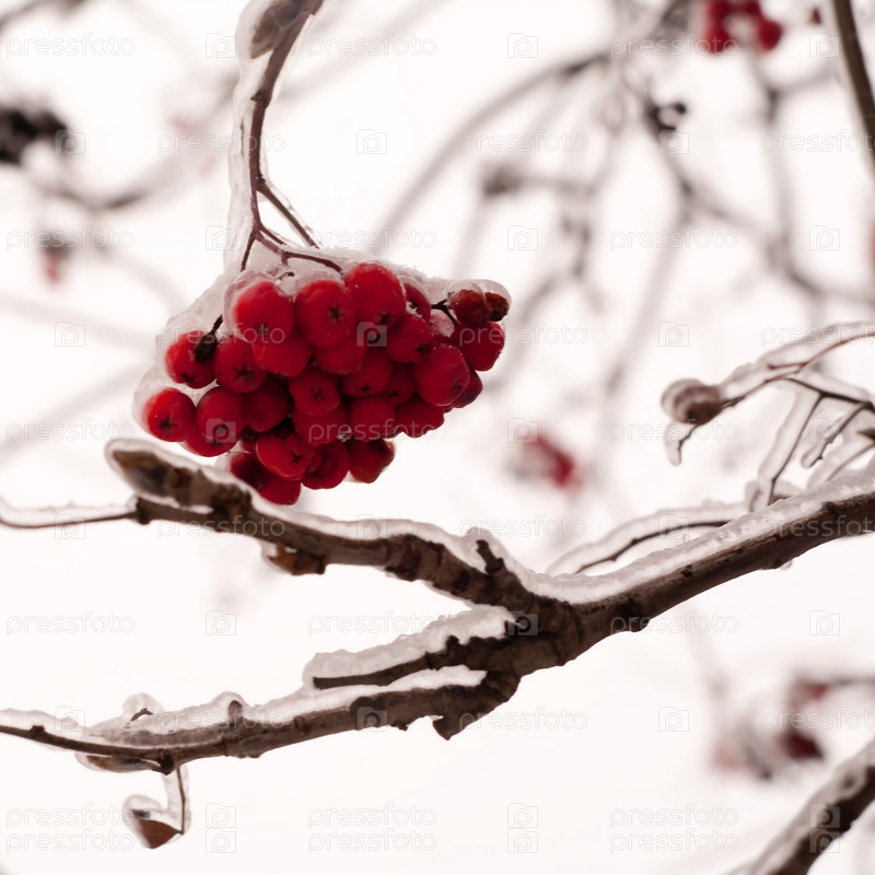Ягоды рябины в ледяной корке