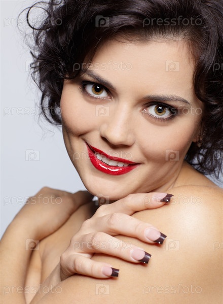 Портрет красивой брюнетки, которая улыбается