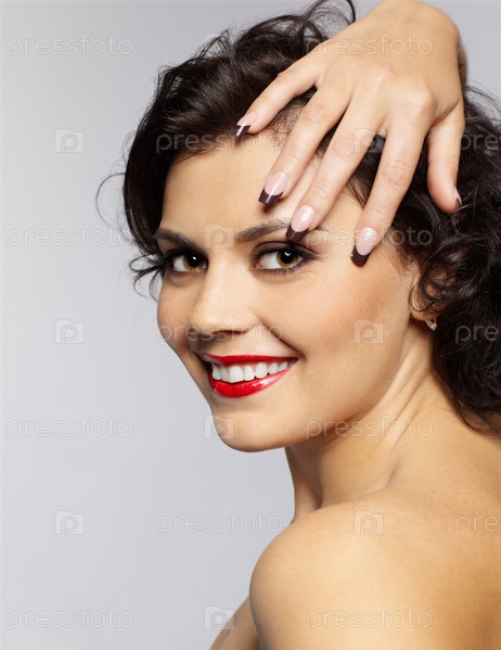 Портрет красивой брюнетки, которая улыбается