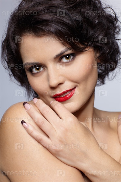 Портрет красивой брюнетки, которая улыбается