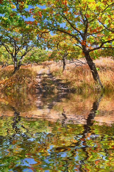 Осенние деревья отражаются в воде