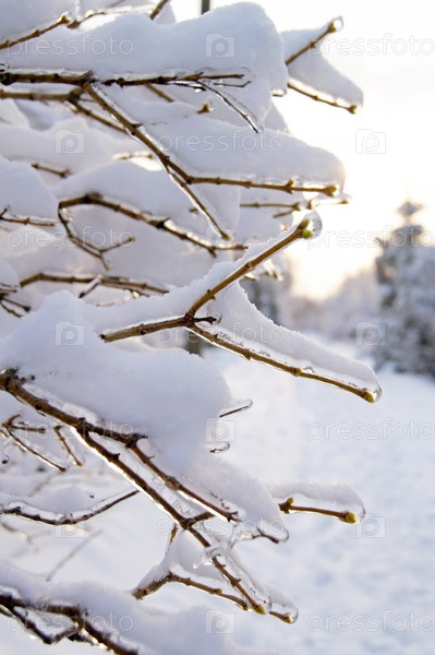 Дерево, покрытое льдом и снегом