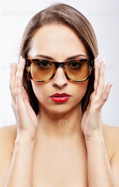 Молодая брюнетка позирует в солнцезащитных очках