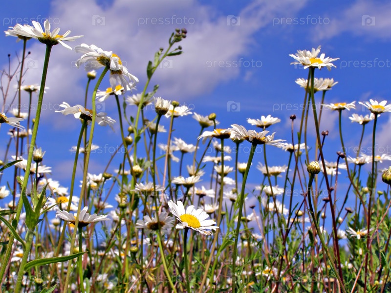 Ромашки на фоне голубого неба