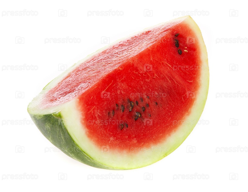 Кусок спелого арбуза на белом фоне