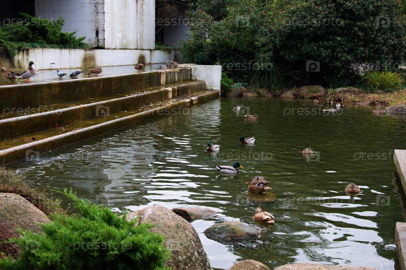 Птицы плавают в пруду