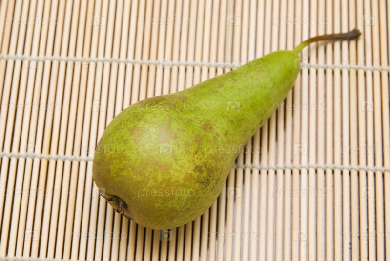 Зеленая груша на бамбуковой салфетке
