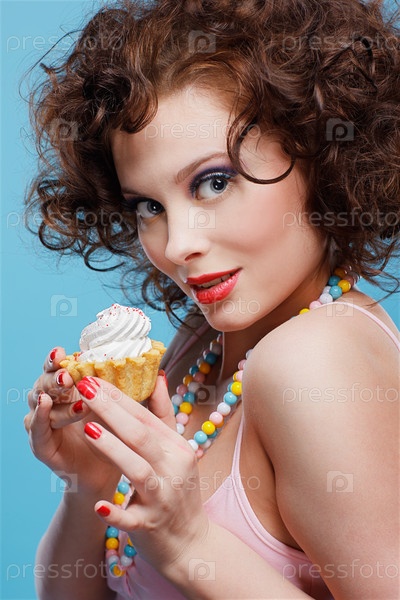 Красивая брюнетка с пирожным