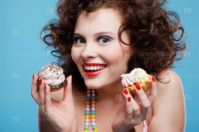 Красивая брюнетка с двумя пирожными