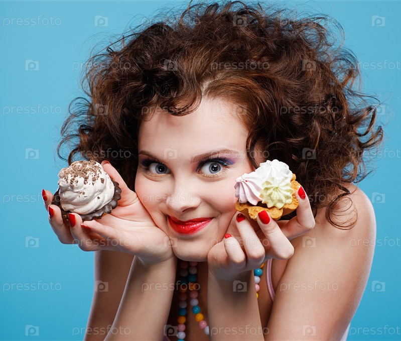 Красивая брюнетка с двумя пирожными