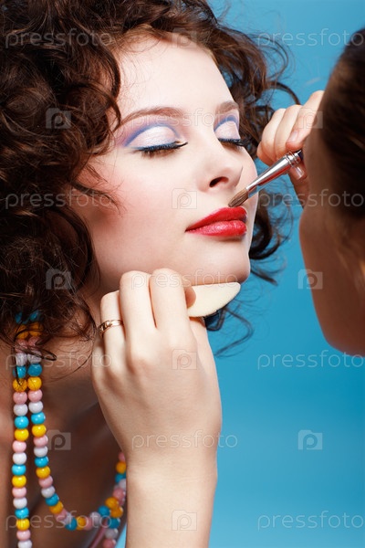 Визажист делает макияж красивой брюнетке