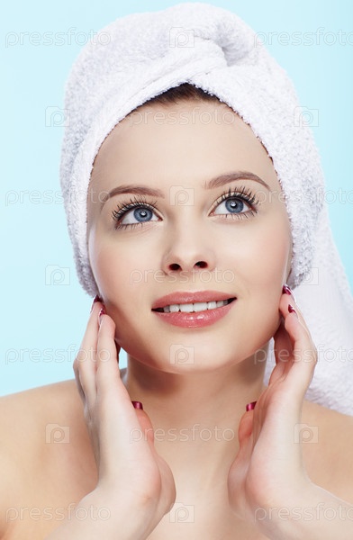Красивая девушка с полотенцем на голове