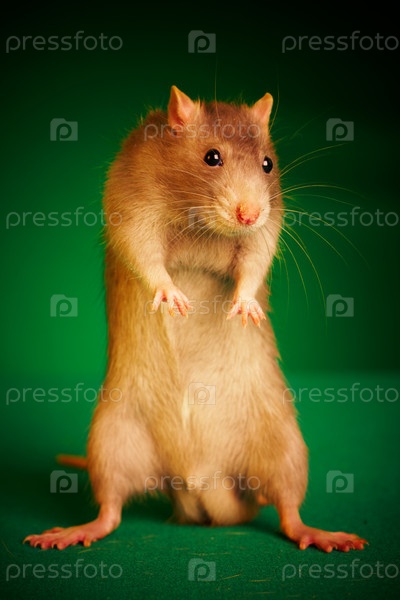 Рыжая крыса на зеленом фоне