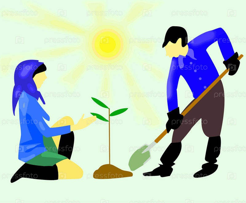 Дети сажают дерево. Иллюстрация