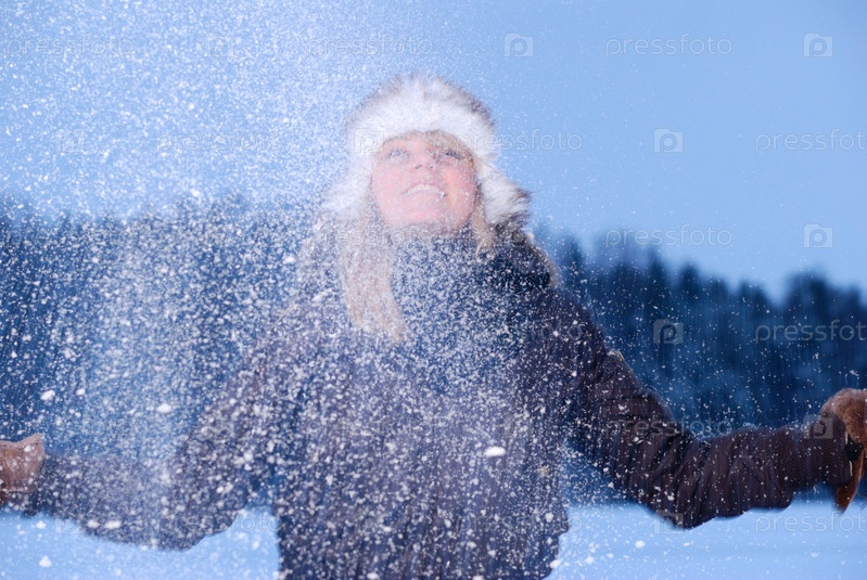 Девушка подбрасывает снег