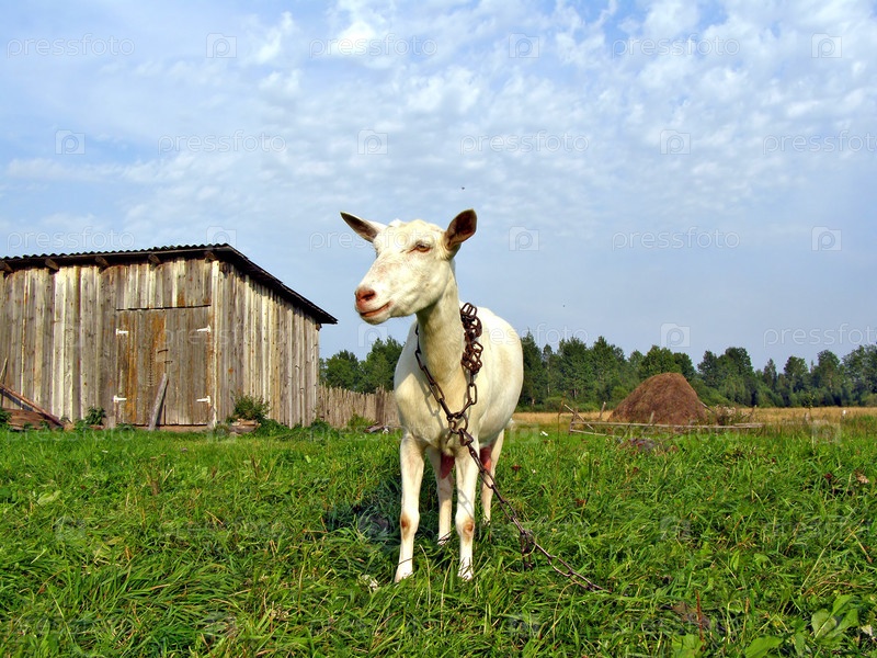 Белая коза на цепи