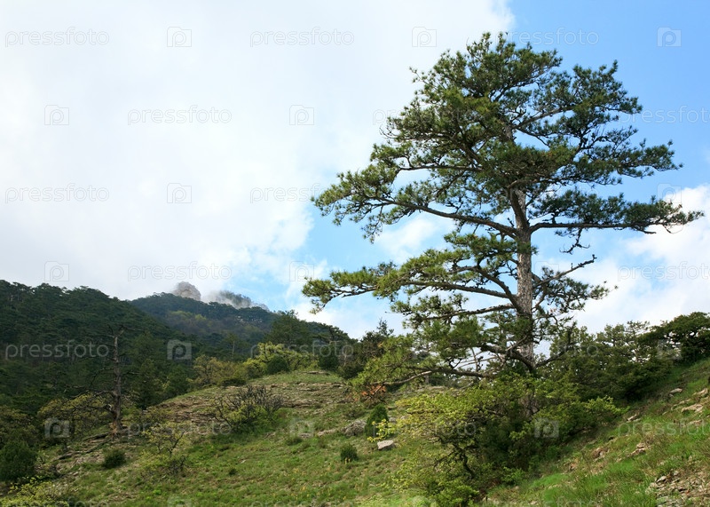 Склон горы Ай-Петри весной на фоне неба, Крым, Украина