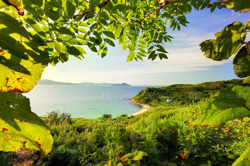 Изумрудный лес и тонкая полоска пляжа у синего моря