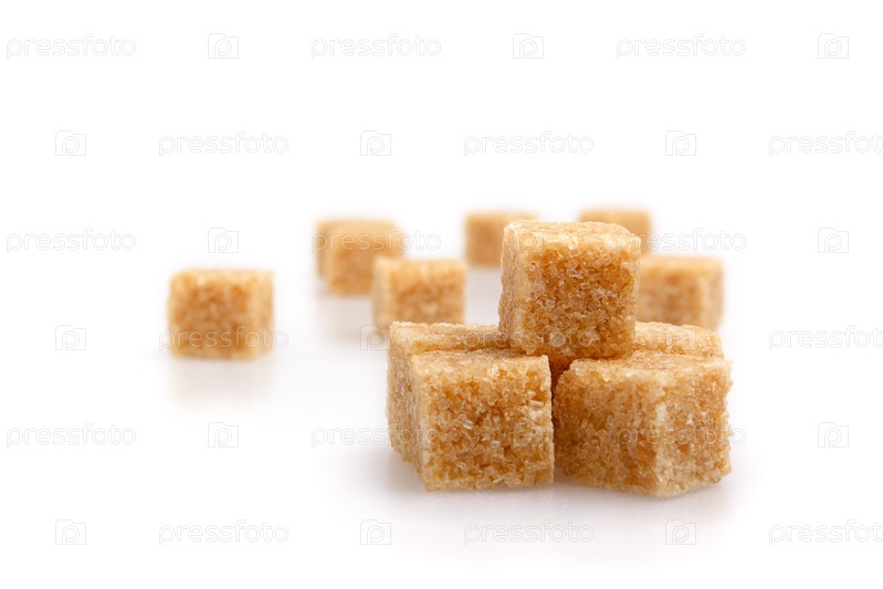 Кубики тростникового сахара на белом фоне
