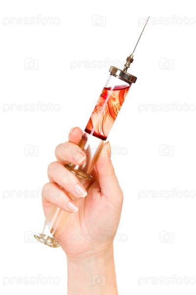 Стеклянный шприц в женской руке