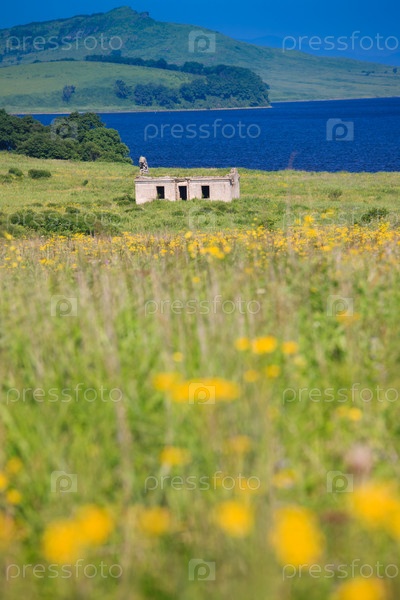 Небольшая постройка у берега моря