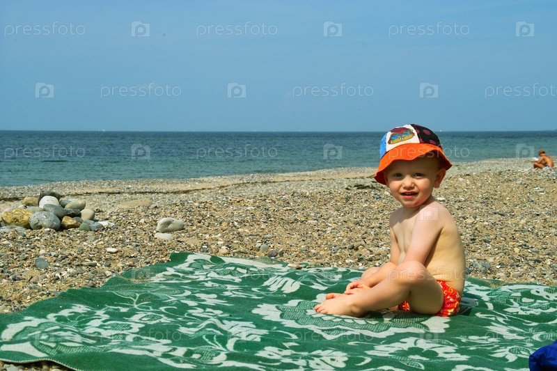 Мальчик сидит на берегу моря
