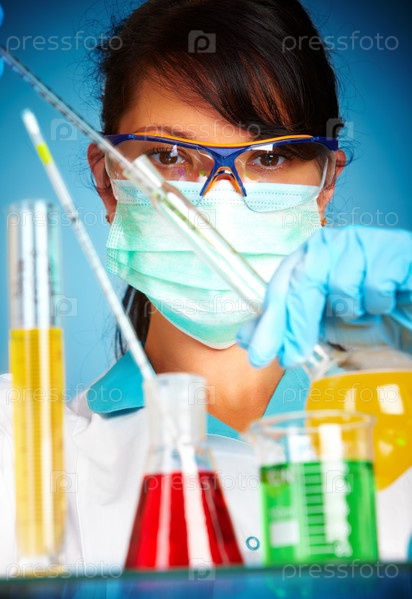 Молодая женщина-ученый в лаборатории с пробирками