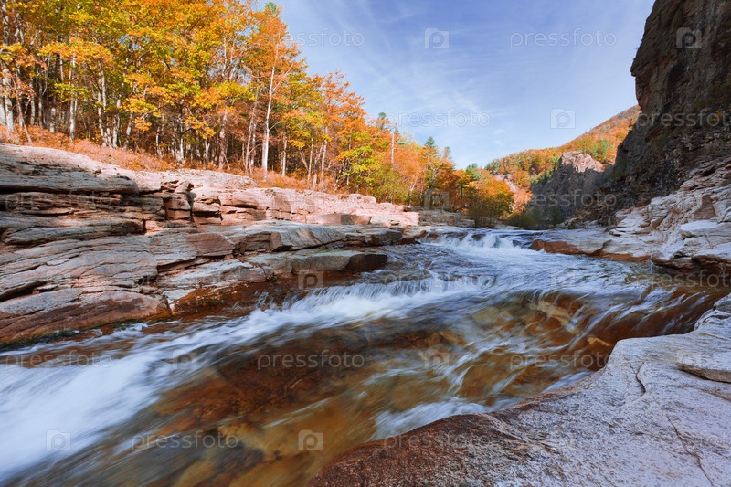 Горная река и осенний лес на берегу