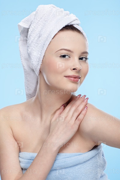 Красивая девушка с полотенцем на голове