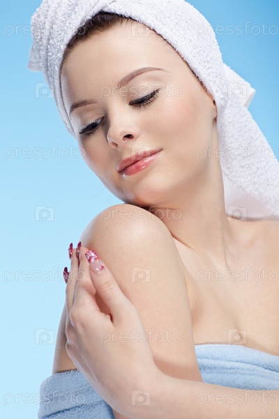 Красивая девушка с полотенцем на голове