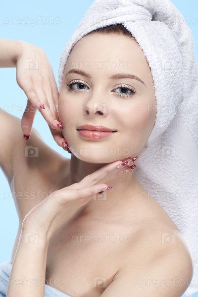 Красивая девушка с полотенцем на голове