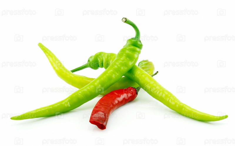 Зеленые и красные чили-пеперсы изолированы на белом фоне