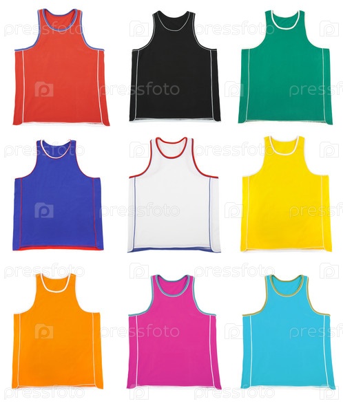Разноцветные футболки на белом фоне