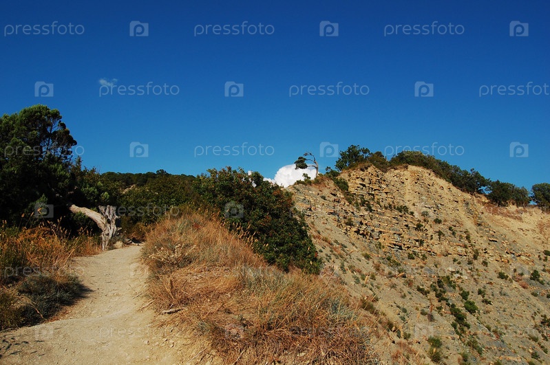 Тропинка в горах на фоне синего неба