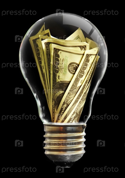 Доллары внутри электрической лампочки