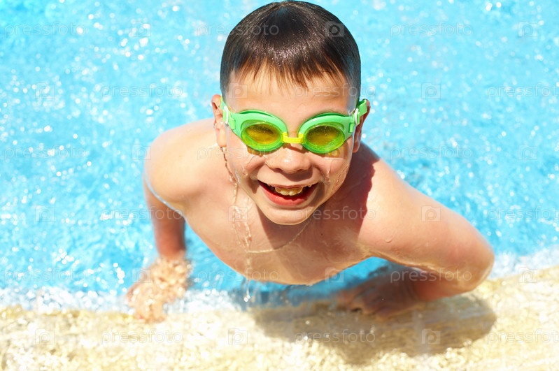 Счастливый мальчик в бассейне