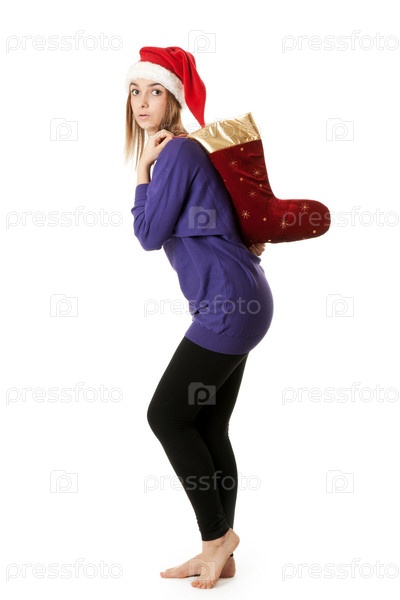 Красивая девушка с рождественским декоративным валенком
