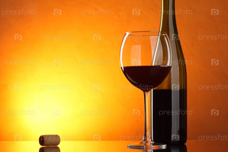 Бутылка и бокал красного вина