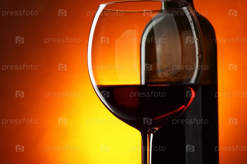 Бутылка и бокал красного вина