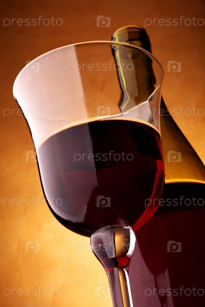 Бутылка и бокал красного вина