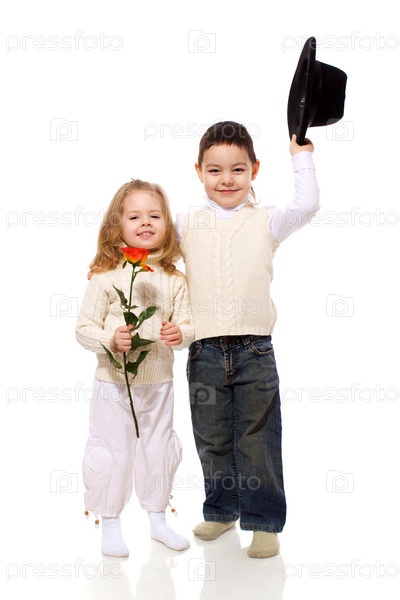 Мальчик и девочка на белом фоне