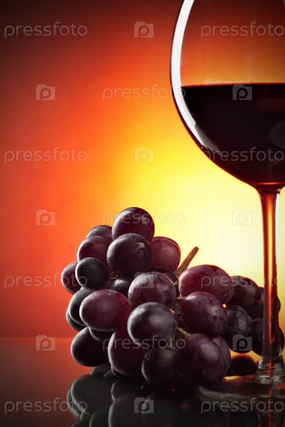 Бокал красного вина и гроздь винограда