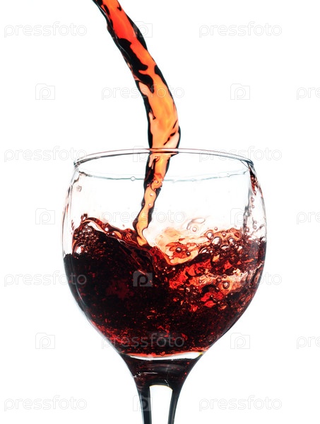 Бокал наполняется красным вином