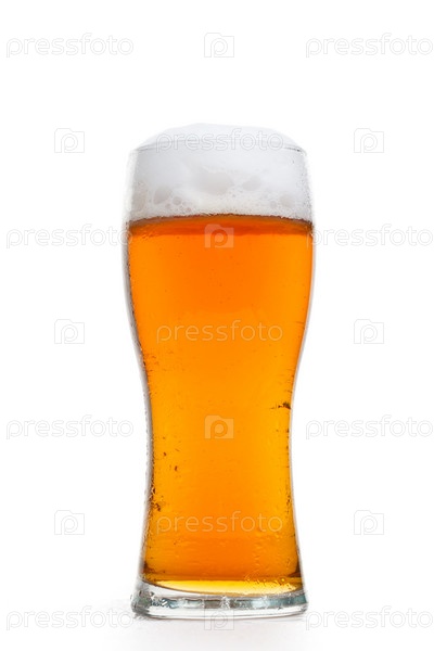 Бокал пива с пеной на белом фоне