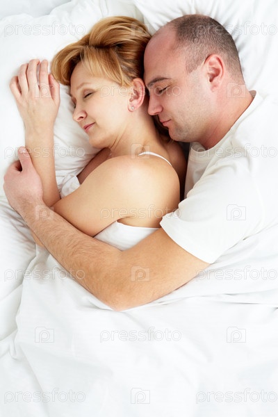Семейная пара спит в постели