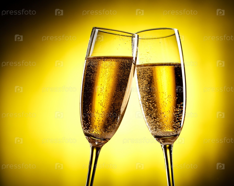 Два бокала шампанского на желтом фоне