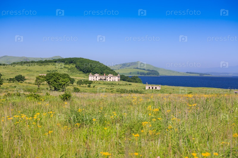 Зеленый луг и синее море