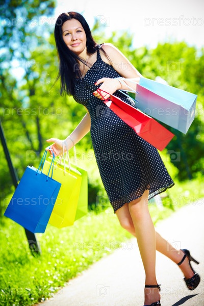 Девушка с пакетами в парке
