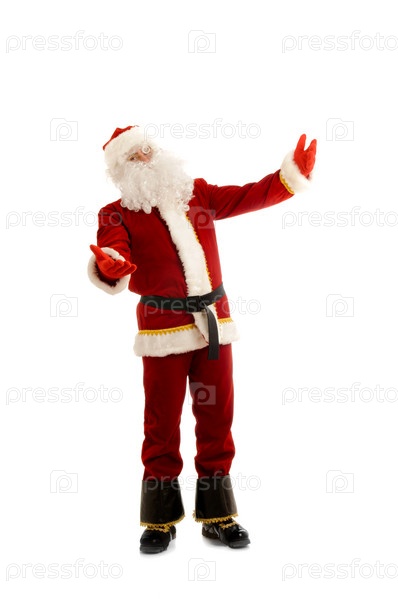 Санта-Клаус приветствует жестами на белом фоне